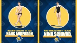 BLOOMINGTON, Minn. – Carleton College senior Hans Anderson was voted the MIAC Men’s Diver of the Year, while sophomore Nina Schwab was selected as the MIAC Women’s Diver of the Year.