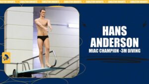 MINNEAPOLIS, Minn. – Hans Anderson won the 3-meter diving competition for the second consecutive year and the Knights’ 200-yard medley relay added an All-MIAC performance as the Carleton College men’s swimming & diving team sits in second place after Day 1 of the MIAC Championships.